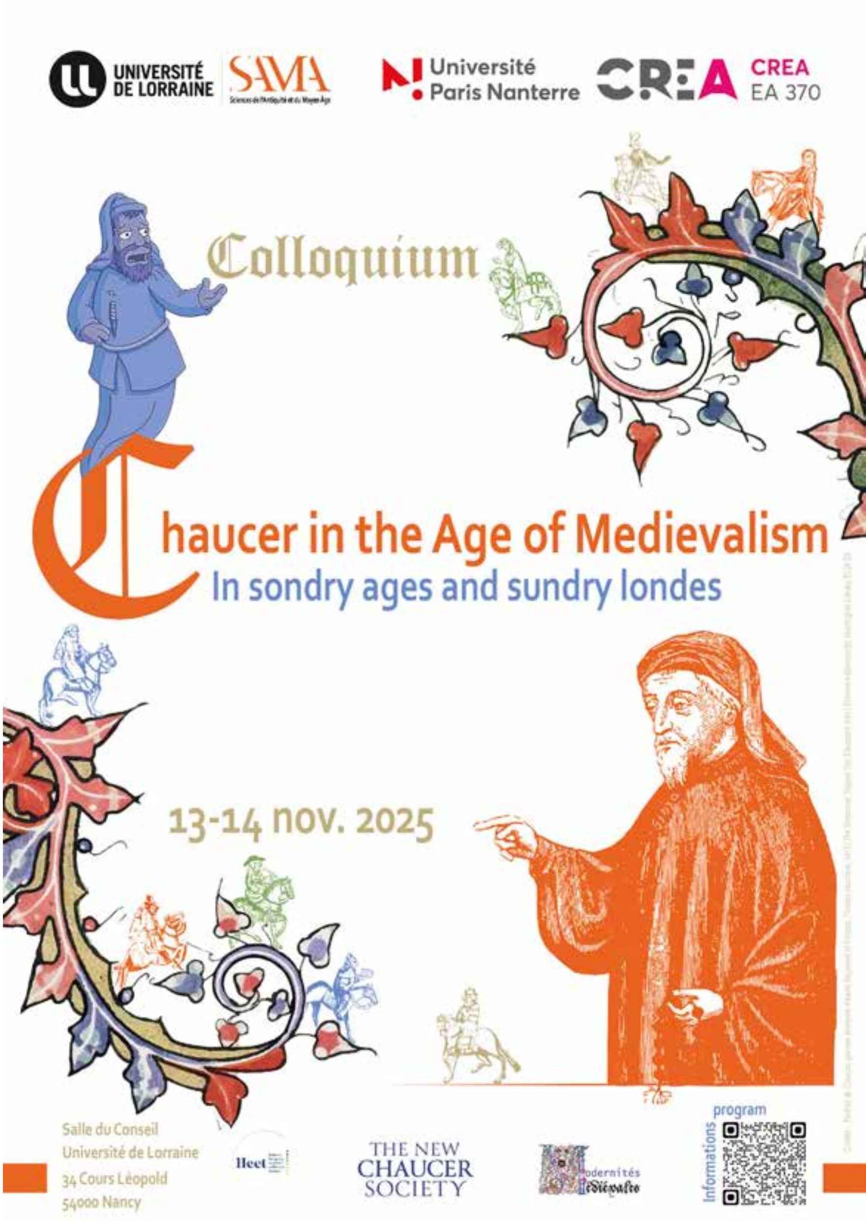 Far from being confined to his era, Geoffrey Chaucer’s work continues to resonate through the ages, inspiring a multitude of post-medieval representations. The poet himself remains a regularly invoked figure, sometimes even without direct connection to his texts, suggesting an autonomous legacy of Chaucer both as a man and an artist. Whether through the prism of cinema, music, theater, television, poetry, or other artistic forms, the poet remains an endless source of inspiration and reinterpretation. This conference invites us to question how adaptations and reinterpretations of Chaucer and/or his work by artists from diverse cultural backgrounds enrich our understanding of his legacy. His various incarnations over the centuries raise fascinating issues regarding intercultural dialogue, the politics of memory, and the evolution of popular culture.